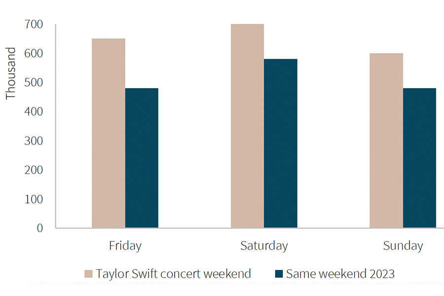 Post-pandemic, consumers are being drawn into the CBD for social reasons, entertainment concerts, recreational activities and cultural exhibitions. City of Melbourne data recorded a 26% uplift in pedestrian traffic during the Taylor Swift concerts across the local government area compared to the same weekend last year.